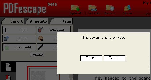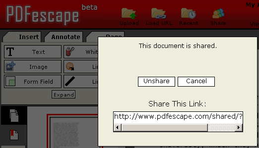 For more information about free PDF sharing with PDFescape, see http://www.pdfescape.com/what/sharing/