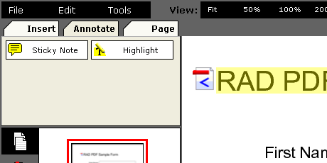 Empower customers to markup PDF files - without Adobe Reader - using RAD PDF's numerous tools including sticky notes and highlighting