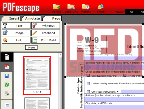 Tuesday, September 10, 2013 at 10:00AM UPDATE: Red Software is no longer affiliated with PDFescape, but this feature is still available in our RAD PDF technology. Edit your PDF with our online implementation, free of charge!