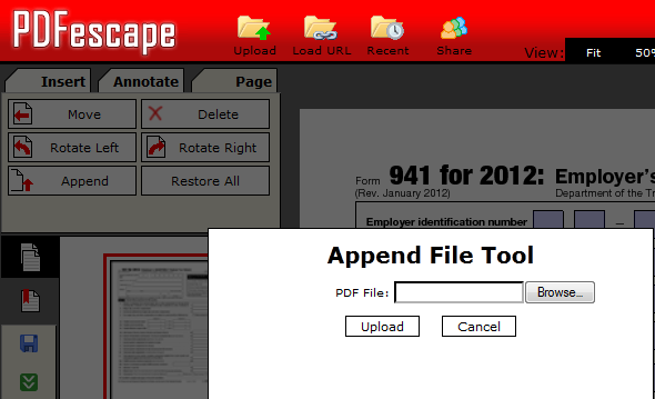 Red Software is proud to announce that free PDF editor, PDFescape, now supports appending PDF (and TIFF) files to the end of the currently loaded document. This new functionality allows multiple PDF documents to be easily merged, right in the PDFescape web interface.